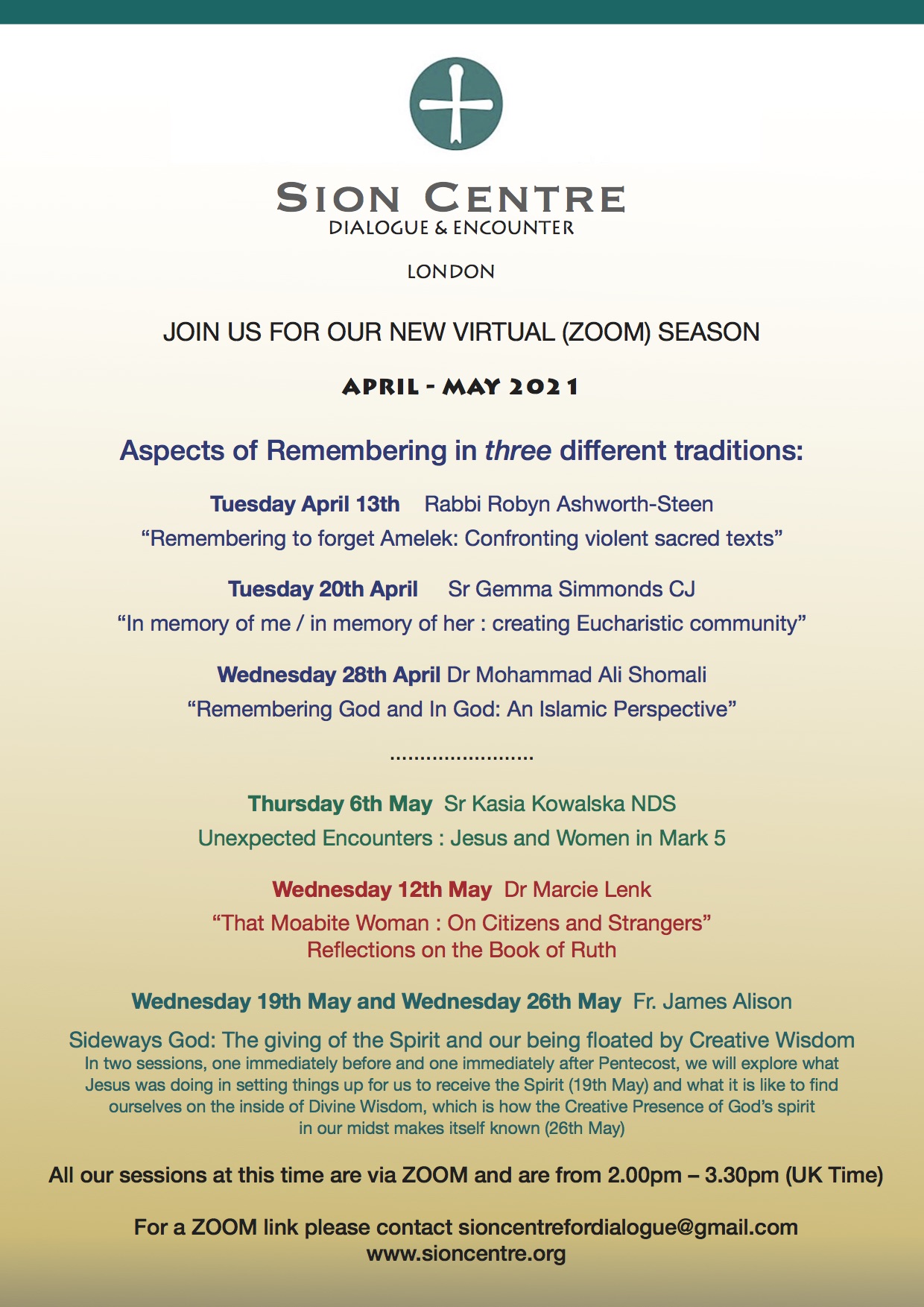 Sion Centre Programme April – May 2021